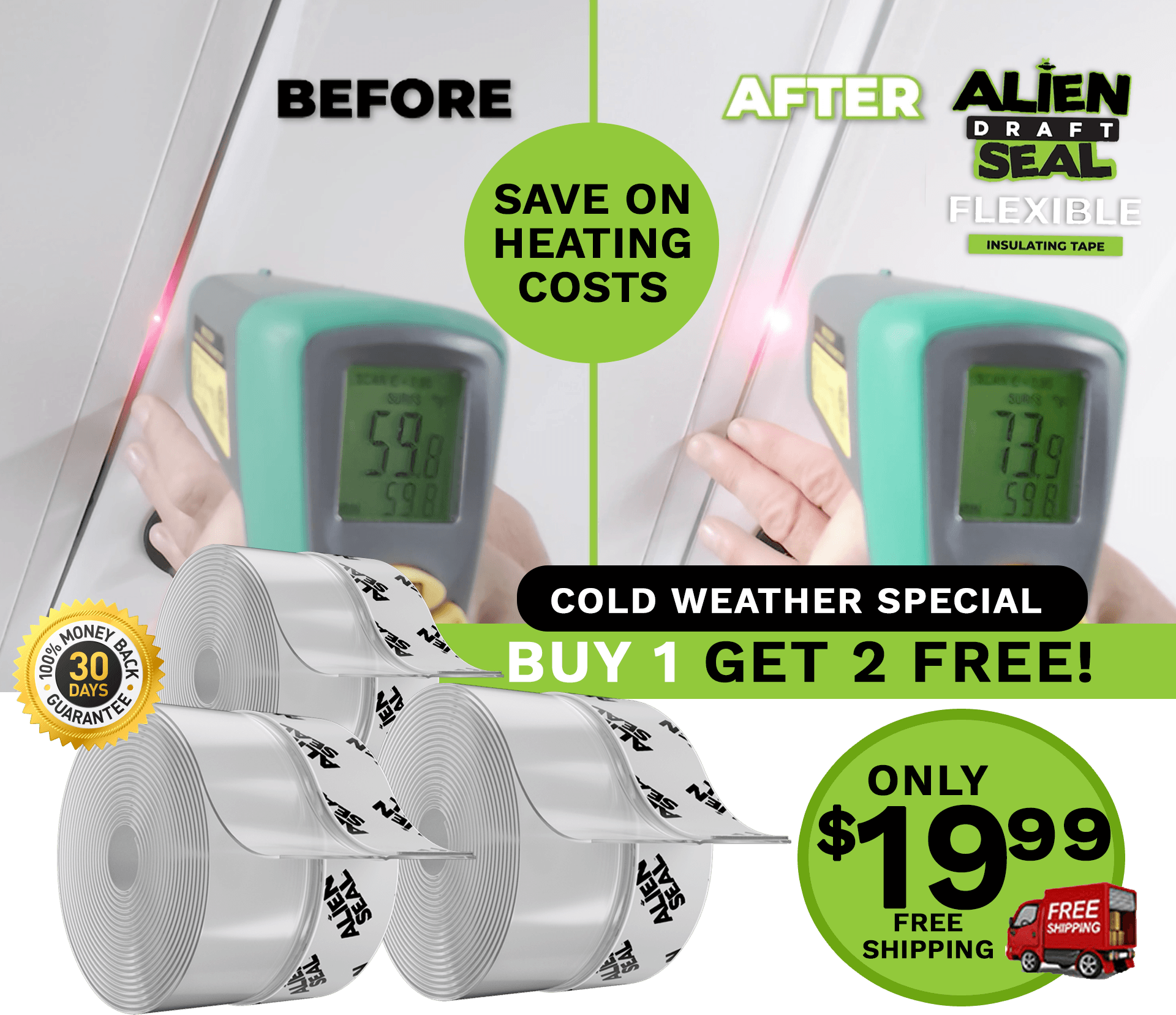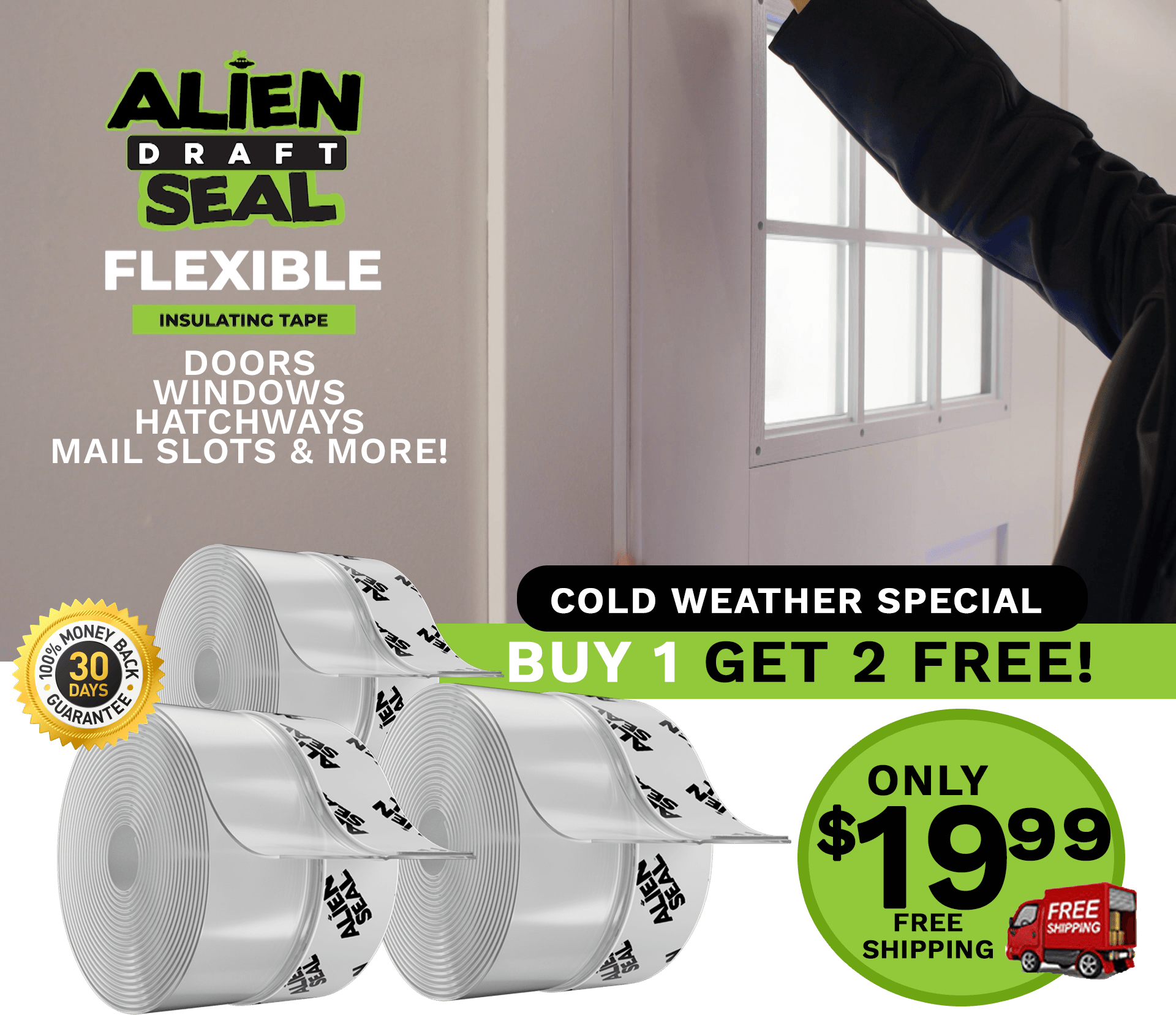 We are offering Alien Draft Seal direct to consumers. You can't buy Alien Seal at stores! And don't forget...When you buy just ONE roll of Alien Seal today we'll add TWO ROLLS for free! You'll get 3 rolls for just $19.99 + FREE SHIPPING!